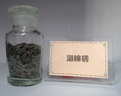 海绵铜,是指海绵状的铜,可用于提炼金属铜及制做辛酸亚铜等原料,用相对密度为8波美度的稀硫酸将矿渣浸泡2-3小时,把生成的铜溶液用泵送到反应柱中,加入铁屑与之反应成海绵铜。我公司的年产海绵铜100余吨,含铜品位在50%以上。